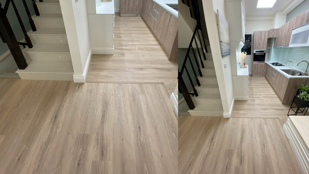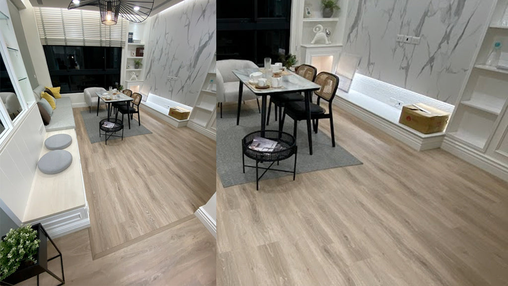 - 業界最高0.55mm耐磨層,耐磨轉數達15,000轉,與一般超耐磨木地板同等級